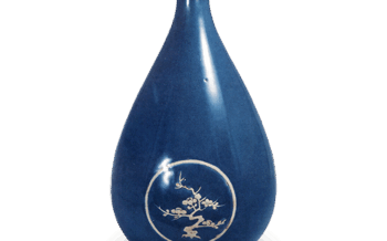 Square wine bottle with oblique line design, enamelled wareHeight 27.2 cm, Diameter 10.2 x 10.2 cmKu...
