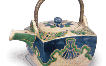 Kyoyaki Cylindrical water jar, katami-gawari (differing-in-halves) glazes, Nogami ware