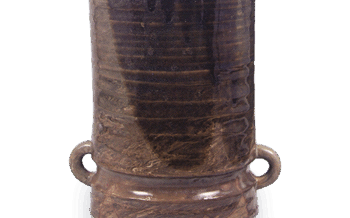Cylindrical water jar, katami-gawari (differing-in-halves) glazes, Nogami wareHeight 21.5cm, mouth d...