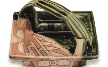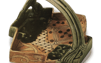 Black Oribe (black ornamented Oribe) tea bowl with chrysanthemum designBlack Oribe (black ornamented...