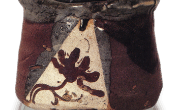 Chawan Black Oribe (black ornamented Oribe) tea bowl with chrysanthemum design