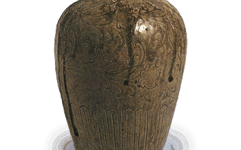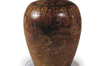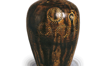Jar Seto ware: vase with stamped ornament, iron glaze. Seto ware: vase with stamped ornament, iron glaze.Excavated from Kaijo Kiln, Seto City, Aichi Prefec... 2023.12.13 JarSetoMino ware