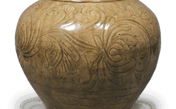 Jar Seto ware: vase with stamped ornament, ash glaze. Seto ware: vase with stamped ornament, ash glaze.Excavated from Kannon Kiln, Seto City, Aichi Prefec... 2023.12.13 JarSetoMino ware