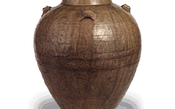 Jar Seto ware: jar with four handles, ash glaze. Seto ware: jar with four handles, ash glaze.15th centuryHeight 45.5 cm, mouth diameter 18.3 cm, body... 2023.12.13 JarSetoMino ware