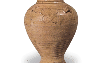 Jar Seto ware: vase with applied ornament, ash glaze. Seto ware: vase with applied ornament, ash glaze.Excavated from Sho Kiln, Seto City, Aichi Prefectur... 2023.12.13 JarSetoMino ware