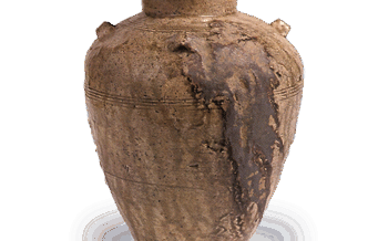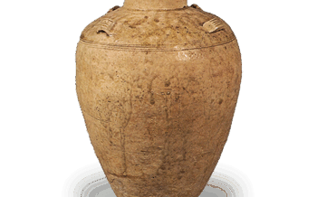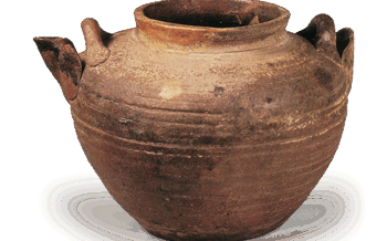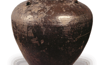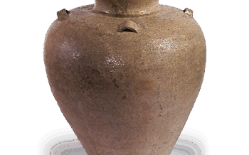 Jar Seto ware: four-handled jar with incised ornament, ash glaze.