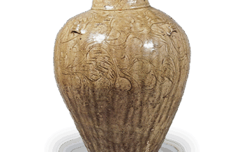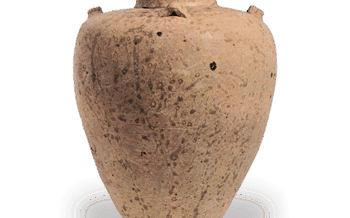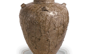 Seto ware: four-handled jar with incised ornament, ash glaze.14th centuryHeight 34.2cm, Diameter 12....