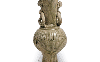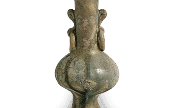 Jar Seto ware: flower vase with stamped ornament, ash glaze. Seto ware: flower vase with stamped ornament, ash glaze.14th centuryHeight 23.4 cm, mouth diameter 8... 2023.12.14 JarSetoMino ware