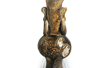 Jar Seto ware: flower vase with applied ornament, iron glaze. Seto ware: flower vase with applied ornament, iron glaze.14th centuryHeight 12.5cm, mouth diameter 5... 2023.12.14 JarSetoMino ware