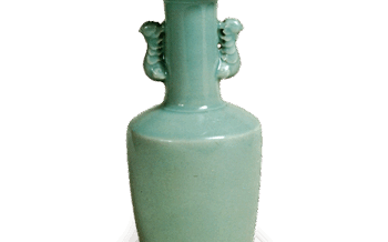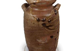 Hanaire Flower vessel with clematis design, enamelled ware