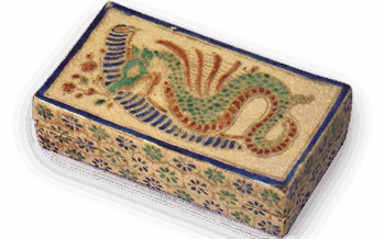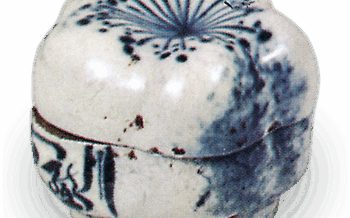 Incense Caddy Mokubei: incense caddy in the shape of the character “Raku”, blue and white