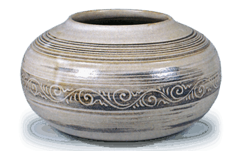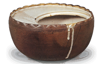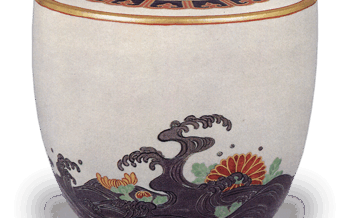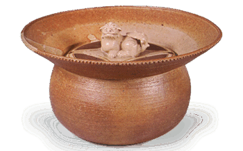 Ninsei: water jar of sakin-bukuro (alluvial gold bag) form with lion knob,white glazeHeight 13.8cm, ...