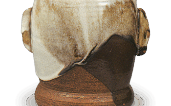 Mizusashi Ninsei: water jar of sakin-bukuro (alluvial gold bag) form with lion knob,white glaze