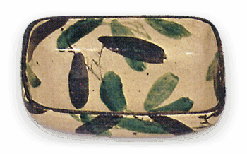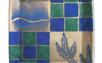 Square dish with pine branch and checker design, enamelled wareHeight 2.1 cm, mouth diameter 15.9 x ...