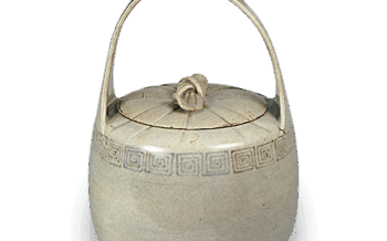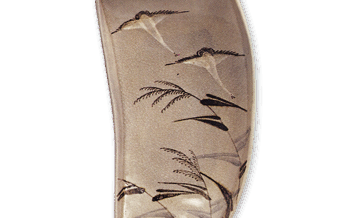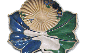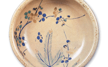 Kyoyaki Square dish with pine branch and checker design, enamelled ware