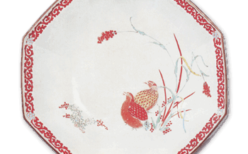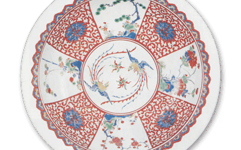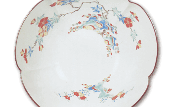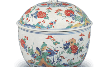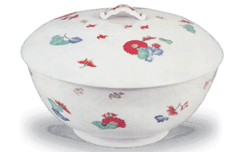 Kakiemon Covered bowl with chrysanthemum and wave design, enamelled ware