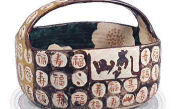 Kenzan: set of dishes in the shape of tanzaku cards with poems,underglaze brown and blueKenzan: set ...
