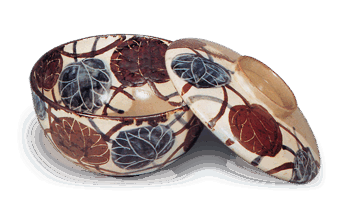 Kenzan: set of dishes with different designs, enamelled wareKenzan: set of dishes with different des...