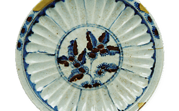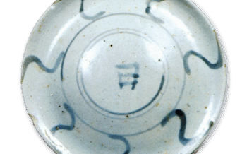 Dish with chrysanthemum design,Height 3.7cm, Bore 21.4cm, Base 8.6cm The sword has a banded design o...