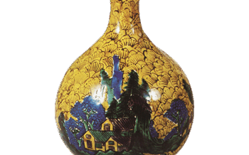Dish with flowering grass and bird design, enamelled wareMouth diameter 14.9cmDish with two monkey d...