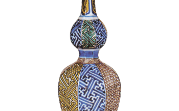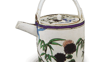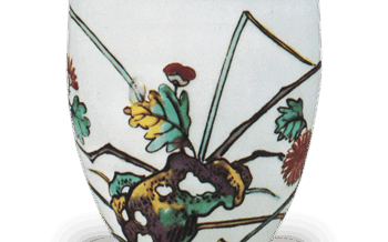 Kokutani Five wine cups with flowering grass design, enamelled ware