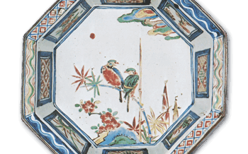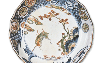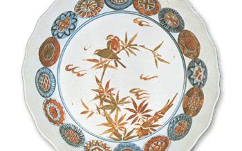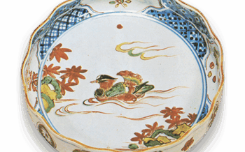 Kokutani Bowl with design of two figures under the tree, enamelled ware