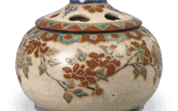 Ninsei: water jar of namban style (with ropy marks on body) with twoloop handlesHeight 16.8 cm, mout...