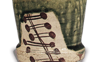 Oribe hiire bowlHeight 9.8 cm, mouth diameter 9.1 x 11.3 cm, base diameter 6.2 cm This is a rather l...