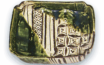 Oribe rectangular dishHeight 4.1cm, diameter 19.1cm x 21.7cm, four legs This is a rare example of a ...