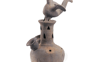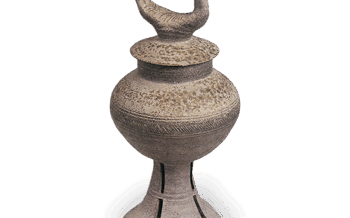 Mukōzuke Sue ware: covered bowl with horn. Sue ware: covered bowl with horn.Excavated from Iio Village, Noyi-gun, Shimane Prefecture.6th centur... 2023.11.30 MukōzukeSue ware