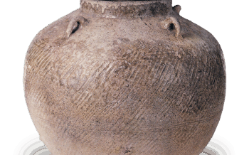 Jar Sue ware: jar with four handles. Sue ware: jar with four handles.Excavated from a tumulus at Tōshi-machi, Toba-shi, Mie.7th century.T... 2023.12.02 JarSue ware