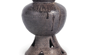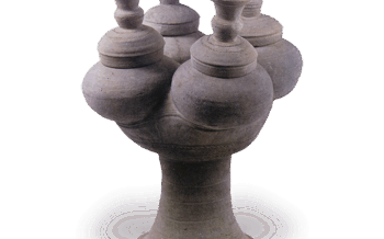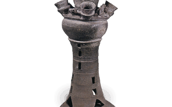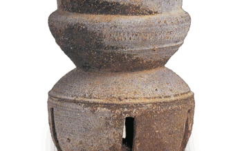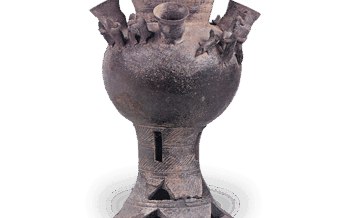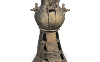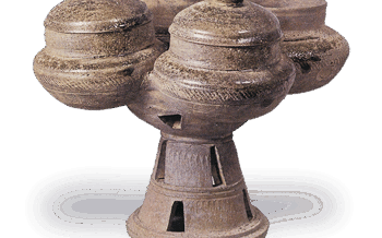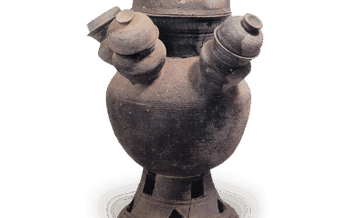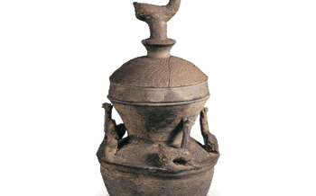 Jar Sue ware: decorated jar with cover surmounted by deer knob.