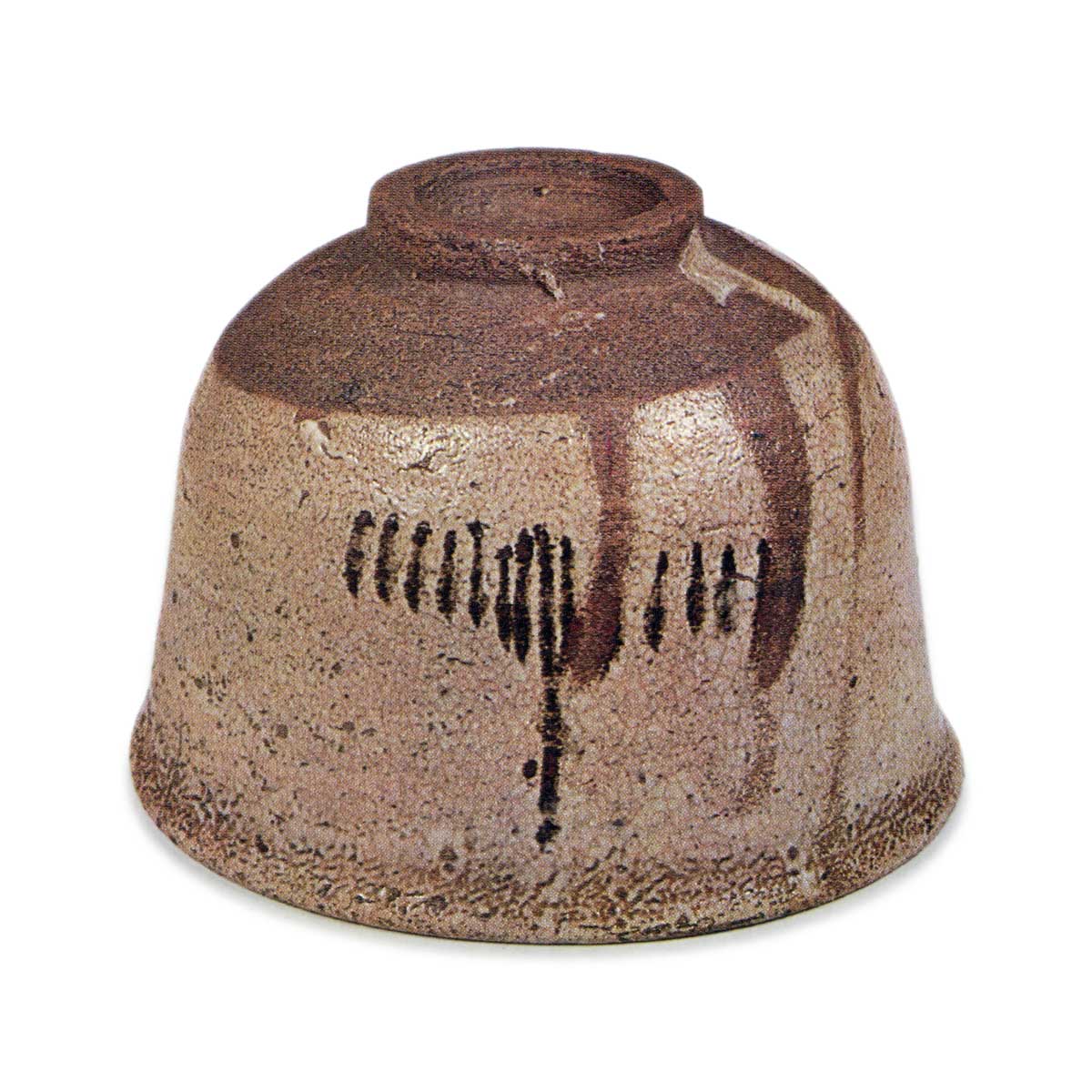 绘唐津 木贼纹 茶碗 唐津绘唐津 木贼纹 茶碗 X Facebook Hatena Bookmark LINE Pinterest 复制 2025.07.29 绘唐津 木贼纹 茶碗 绘唐津 木贼纹 茶碗 高度9.0厘米 口径12.7厘米 高台径4.8厘米田中丸收藏碗身深厚,小巧紧凑,口部微微外翻,腰部略微凸起,高台小巧自然。高台内部的削刻较深,底部周围的泥土较厚。碗身两侧绘有类似木贼的纹样,除高台至腰部外,全面覆盖着混有土灰的长石釉,釉流自然地流淌在腰部,形成两三道优雅的纹路。木贼纹的笔触显得随性自然,却又不失雅趣,与茶碗的造型完美融合。釉面烧制得柔和细腻,是一款茶味深厚的茶碗。