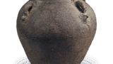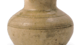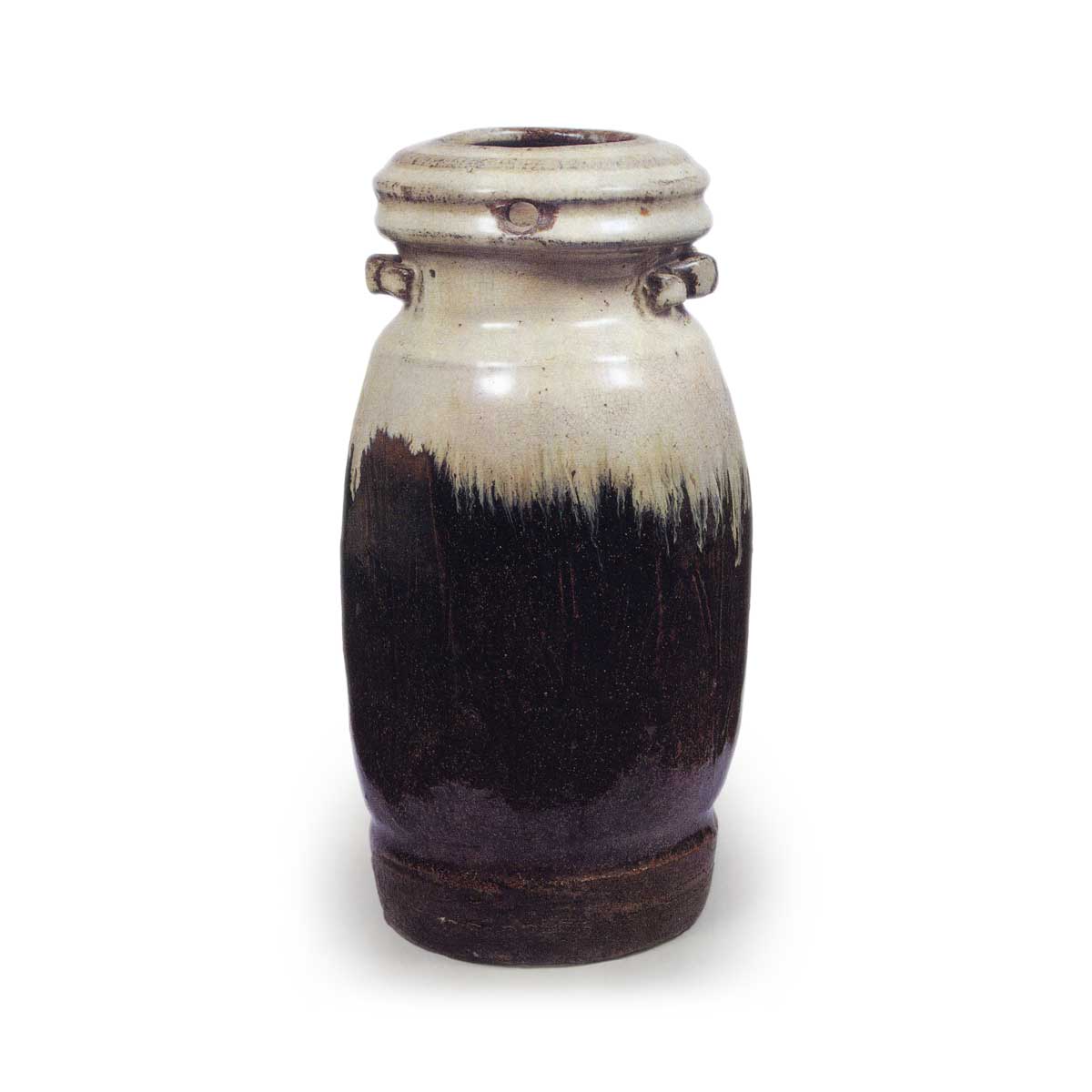 朝鲜唐津耳付花瓶 唐津朝鲜唐津耳付花瓶 2025.07.29 朝鲜唐津耳付花瓶 高度23.9厘米 胴径12.3厘米 底径9.6厘米出光美术馆白濁釉与黑飴釉清晰分隔,是朝鲜唐津花瓶中最为杰出的作品。采用敲打成型技法, 器身六面均有倒角处理,颈部紧凑,两侧附有耳, 口部呈阶梯状并向内收缩。 白濁色的稻草灰釉厚重覆盖, 与黑糖釉自然融合,上下形成鲜明对比,极为艳丽。由于采用敲打成型,底部平坦,手感轻盈,器身饰有细长的纵向纹路以增添变化,底部也薄涂釉料。虽然作为花瓶制作,但究竟是藤川内窑的作品,还是高取内ヶ磯窑的制品,尚无法确定。此器曾为大阪鸿池家传藏。