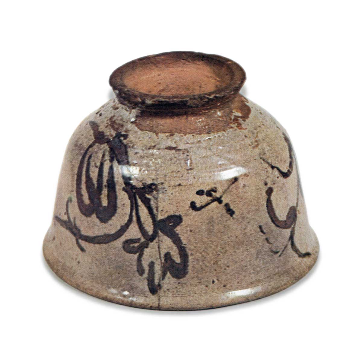 绘唐津菖蒲纹鉢 唐津绘唐津菖蒲纹鉢 2025.07.30 绘唐津菖蒲纹鉢 绘唐津菖蒲纹鉢 高度11.3厘米 口径16.1厘米 高台径7.6厘米三得利美术馆碗口微微张开,造型简洁挺拔,碗口边缘向外翻卷,高大的高台被高高削出,高台内部的削痕也十分深邃。碗身一侧饰有菖蒲纹,另一侧则以芒草与花卉纹样自由奔放地装饰。这也是唐津碗中的杰作之一,同类作品罕见。高台周围露出红色粗糙的陶土表面。 推测为市之瀬高丽神窑的作品。
