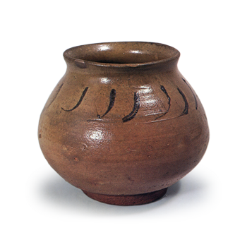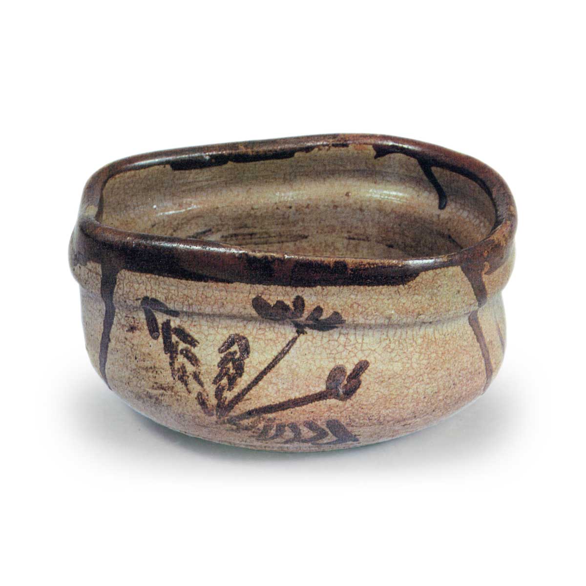 绘唐津蒲公英纹沓鉢 唐津绘唐津蒲公英纹沓鉢 X Facebook Hatena Bookmark LINE Pinterest 复制 2025.07.30 绘唐津蒲公英纹沓鉢 高度9.0厘米 口径13.9×16.9厘米 高台径 6.0×27.0厘米碗身分段,腰部外翻,呈沓形。碗身两侧绘有蒲公英状草花图案,口缘涂铁釉,呈皮鲸风。内部和侧面亦以铁颜料刷出笔触。高台低矮,几乎全面覆盖鼠色釉,釉面融化良好。与前图一同,为楔形鉢中的精品。应为甕屋谷窑的作品。