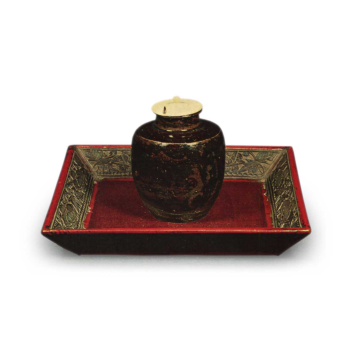端雕物 中栗色 四方盆一