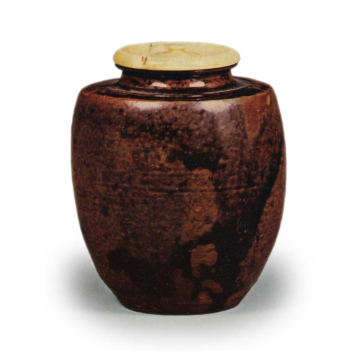 此茶入,口部玉缘处理精巧,与甑边完美贴合,肩部张力适中,胴部收缩自然,整体呈现优雅的造型,底部稳固。