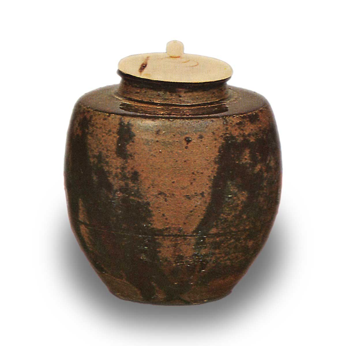 唐物茶器的釉色之美,堪称此类茶器的巅峰之作。柿地釉色优雅,深黑色的釉流几条显现,随器形流动而变色,邻近处釉色断裂,景色极为有趣。口部、甑、肩部等尺寸适中,与胴部和谐相连,张力适中,呈现出优雅的形态。胴体略低,从底部露出泥痕,板底干净,无瑕疵,作工、釉色等均符合要求。松平不昧特别喜爱,将其列为珍品。