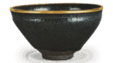 奥高丽茶碗 唐津奥高丽茶碗 2025.07.31 奥高丽茶碗 高度9.3厘米 口径15.5厘米 高台径6.1厘米田中丸收藏这款茶碗造型宽大,高脚低,高台内侧呈圆弧形,中央立有低矮的兜巾。釉色薄而光滑,烧制后呈现柔和的枇杷色,釉面略带红色。釉色顺着高台流下,形成一道流线,内壁浅凹处镶嵌着镜面。