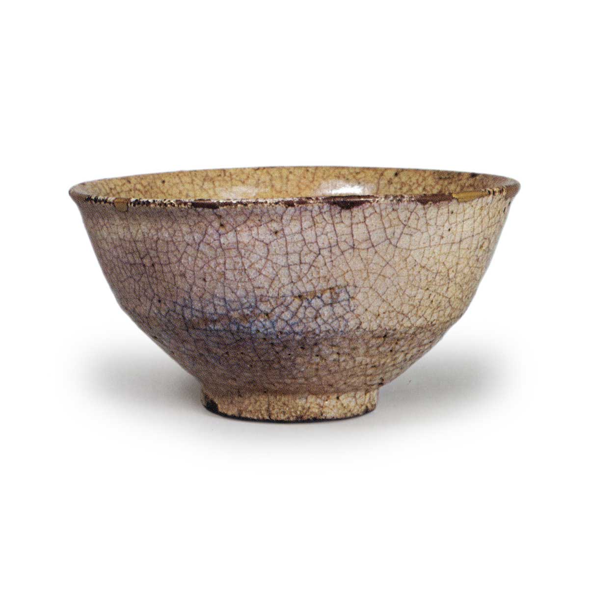瀬戸唐津茶碗 銘东云 唐津瀬戸唐津茶碗 銘东云 2025.07.31 瀬戸唐津茶碗 銘东云 高度7.4厘米 口径14.9厘米 高台径6.6厘米口部呈端反形,整体造型紧凑的茶碗。藁灰混入的长石釉厚重覆盖,部分呈海鼠状变化,釉面延伸至高台,高台内侧为土露,土质坚硬烧结。碗内壁留有四处指痕。在手作瀬戸唐津茶碗中,此件作品的制作工艺尤为出色, 盒内刻有「东云」铭, 由松花堂昭乘亲笔题写。