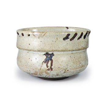 绘唐津芦鹭纹茶碗 唐津绘唐津芦鹭纹茶碗 X Facebook Hatena Bookmark LINE Pinterest 复制 2025.08.01 绘唐津芦鹭纹茶碗 高度8.9厘米,口径13.7~14.6厘米,高台径6.0厘米口部以缓和的起伏扭曲成三角形,一侧腰部设有一段台阶,高台宽大,高台内立有兜巾。外侧口缘三面饰有斜线纹、檜垣纹、锯齿纹等, 器身饰有鹭、草花、芦等纹样, 器内描绘有蛇笼风格的纹样。内外施釉烧成灰色,器形与纹样可见志野等美浓陶的影响,但质朴的笔触是唐津独有的特色。绘画飘逸,是绘唐津茶碗中的杰作之一。应为内田皿屋窑或甕屋谷窑的作品。