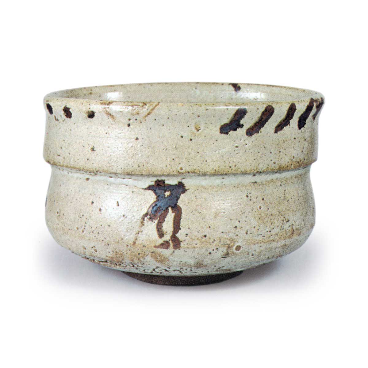 绘唐津人物纹茶碗 唐津绘唐津人物纹茶碗 X Facebook Hatena Bookmark LINE Pinterest 复制 2025.08.01 绘唐津人物纹茶碗 高度14.5厘米 口径14.3厘米 高台径6.6厘米半筒形的茶碗,碗身带有类似胴筋的阶梯状纹饰。高台也较低且削薄,底座宽广。与饭洞瓮的雕唐津器形相似,整体厚实, 口部饰有檜垣纹、斜线纹、点斑纹等, 胴部绘有人物、千鸟、树木等图案。 器形虽不同,但与前图的绘纹样相似。 内外釉层较薄, 露出带红色的土质表面。