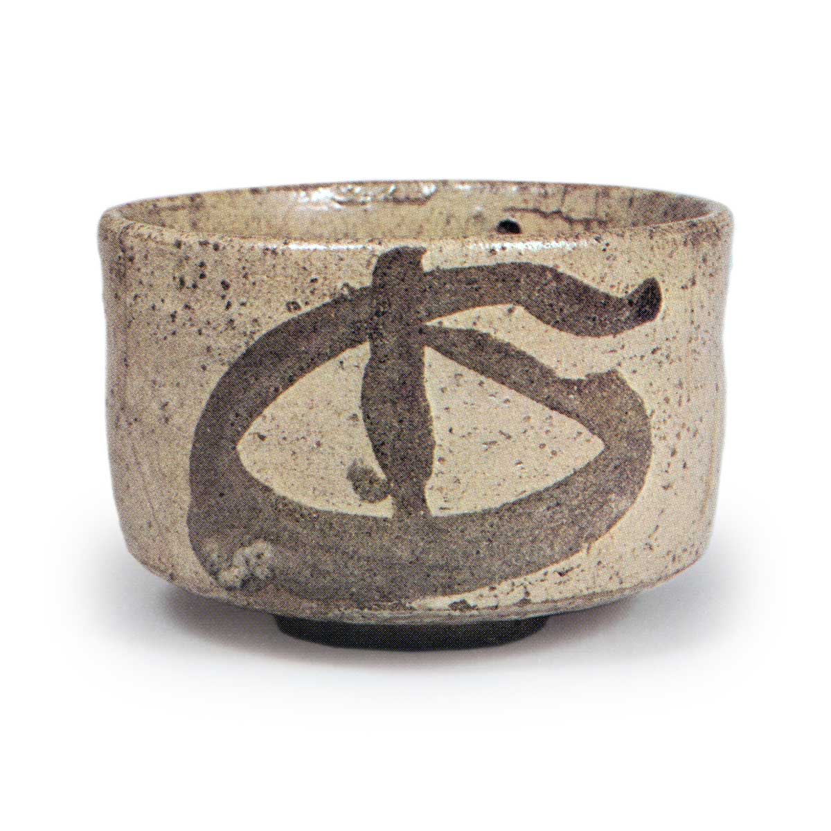 绘唐津茶碗 唐津绘唐津茶碗 2025.08.02 绘唐津茶碗 高度7.4厘米 口径11.9厘米 高台径5.0厘米腰部略微圆润的简洁茶碗,高台部分小巧削制,高台内侧呈现细腻的皱纹。 碗身两侧以粗犷笔触绘制抽象纹样,釉料延伸至高台部分。推测为藤川内系窑烧制。 箱内题有传为清水道竿笔迹的题款,书有“古唐津筒”。