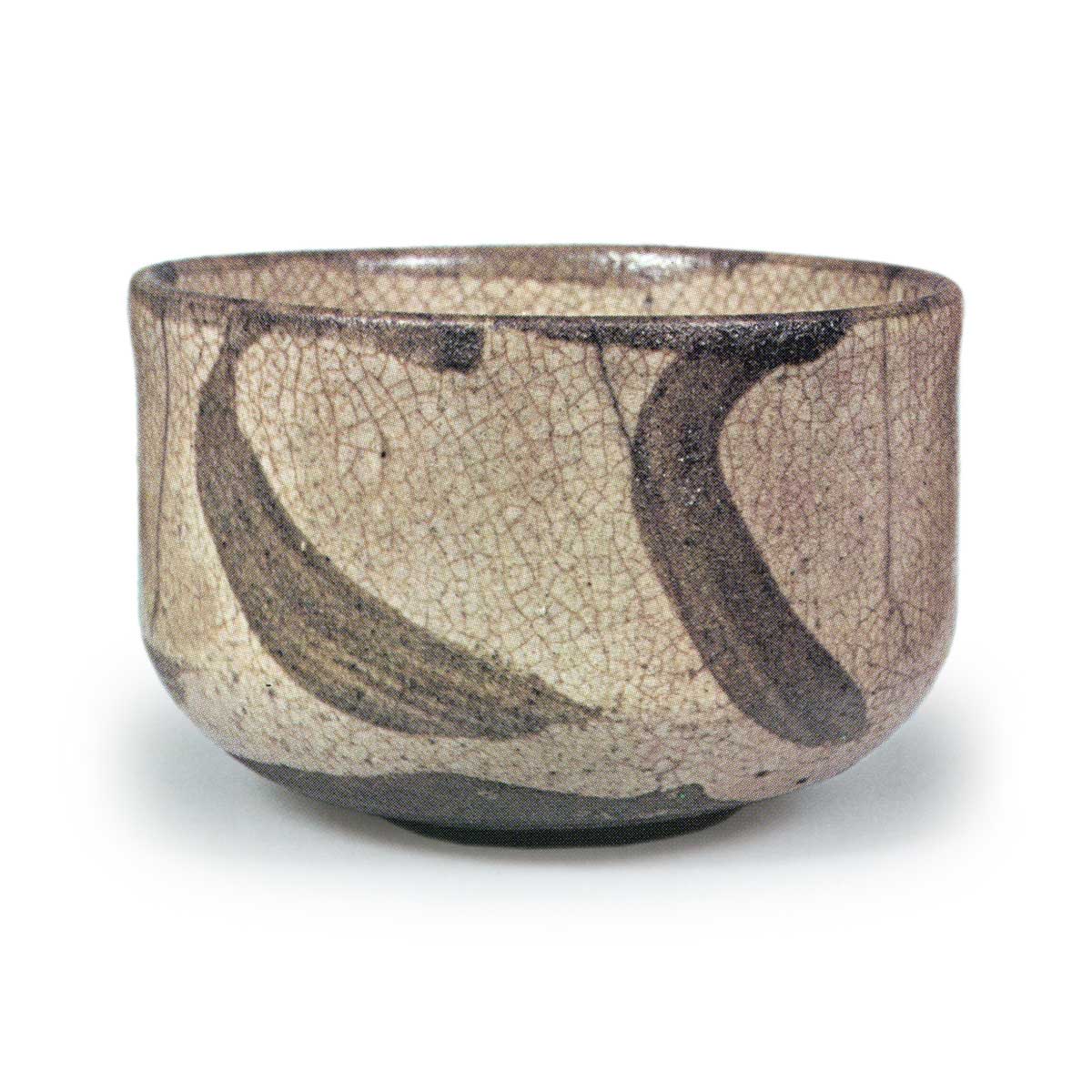绘唐津茶碗 唐津绘唐津茶碗 2025.08.02 绘唐津茶碗 高度7.9厘米 口径12.0厘米 高台径5.5厘米出光美术馆这件作品应出自藤川内派窑炉。陶身以粗笔触纵向描绘纹样,分布于五方,釉料厚重且融化良好,釉裂纹清晰可见。志野风格中亦有类似绘纹的茶碗。