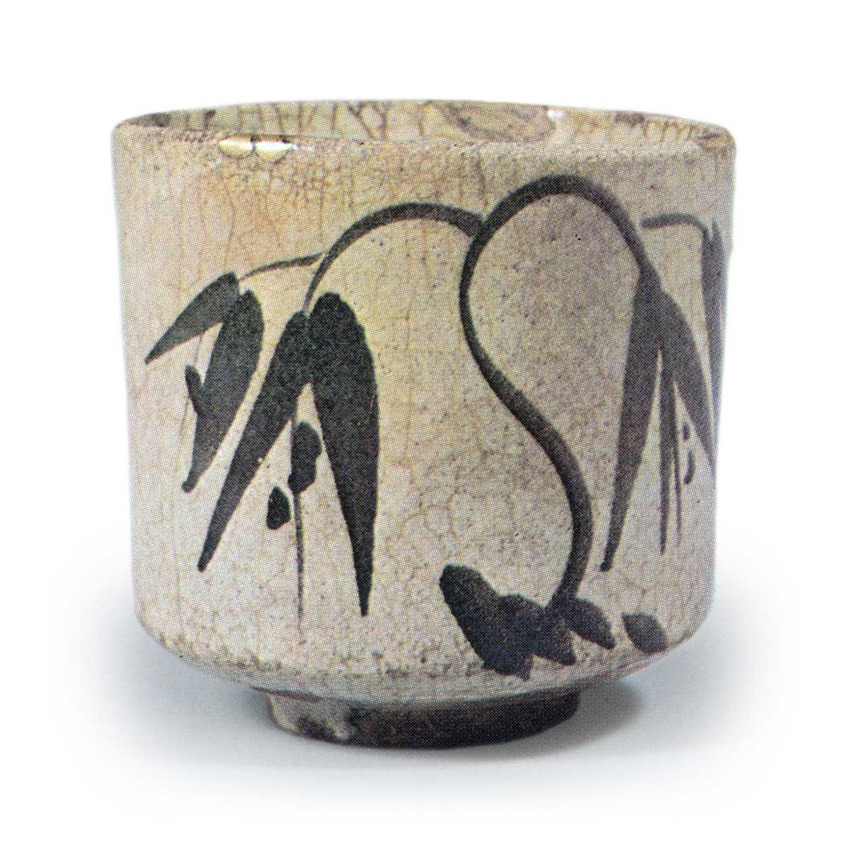 绘唐津柳纹筒形茶碗 唐津绘唐津柳纹筒形茶碗 X Facebook Hatena Bookmark LINE Pinterest 复制 2025.08.02 绘唐津柳纹筒形茶碗 高度8.3厘米 口径7.9厘米 高台直径4.1厘米这款茶碗造型简洁,筒身笔直,高台内侧的凹槽较深。 筒身一侧绘有柳树图案,另一侧则饰有瓔珞风格的纹样,并施以釉料。釉面呈油润的黄色,烧制后质地柔和。 据推测,此作品出自内田小峠窑。