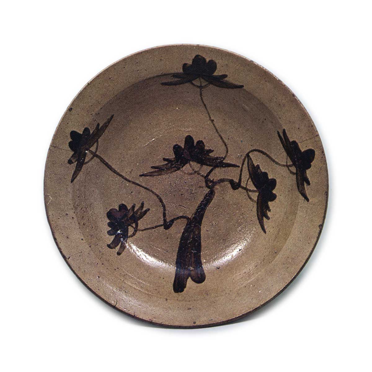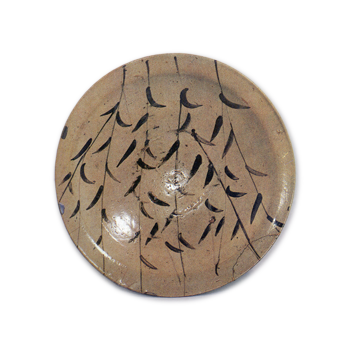 绘唐津松纹大盘 唐津绘唐津松纹大盘 X Facebook Hatena Bookmark LINE Pinterest 复制 2025.08.02 绘唐津松纹大盘 高度9.0厘米 口径36.2厘米 底径10.5厘米出光美术馆口部呈端反形的大型盘子,高台极小且低矮,以简洁的线条削制而成,口部呈现出缓和的曲线。盘面满绘向三方伸展的松树枝干,松叶的描绘手法具有唐津陶器的独特风格。与之相似的绘纹花瓶曾出土于美浓元屋敷窑,推测这些作品可能由甕屋谷窑的陶工在美浓制作。甕屋谷窑似乎特别喜欢在大盘上绘制松树图案,图23和24也出自该窑,且在甕屋谷窑址出土了与该盘相似的陶片。除高台部分外,盘面整体随意施釉。