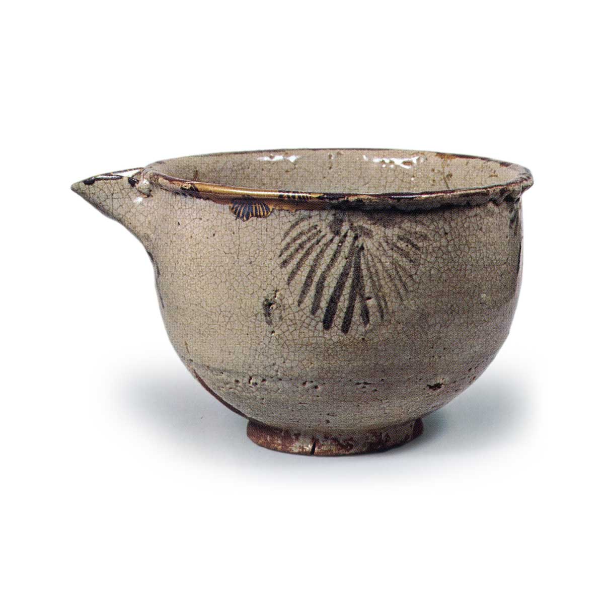 绘唐津片口 唐津绘唐津片口 2025.08.03 绘唐津片口 高度12.5厘米 口径17.6厘米 底径8.3厘米出光美术馆深口片口,器身四面饰有松叶状纹样。 这种造型独特的片口, 整体厚实,手感沉重。 烧制地不详。