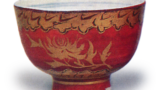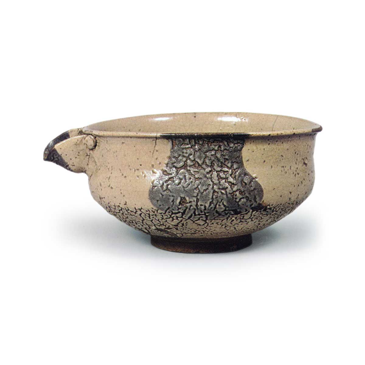 唐津片口 唐津唐津片口 2025.08.03 唐津片口 高度10.0厘米 口径19.1厘米 底径8.3厘米出光美术馆略浅的片口,高台部分用力削出,底座宽阔。胴体三面施以黑色釉料,内外均厚涂长石釉,这种独特的造型较为罕见,推测应为牛石窑烧制。