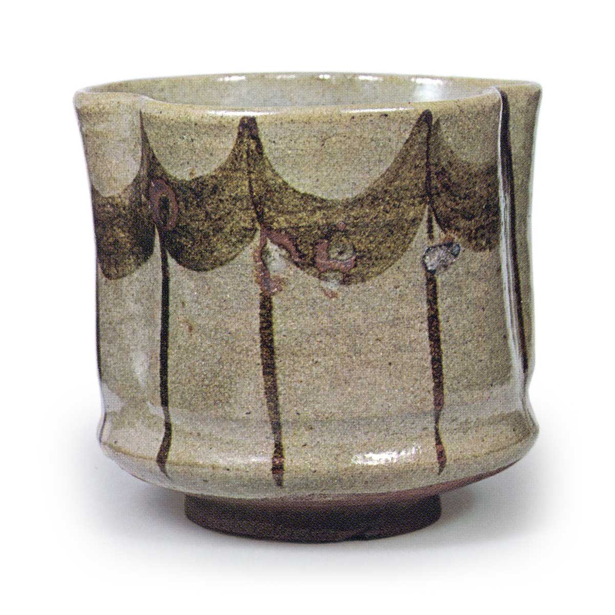 绘唐津网干纹三叶形筒向付 唐津绘唐津网干纹三叶形筒向付 X Facebook Hatena Bookmark LINE Pinterest 复制 2025.08.03 绘唐津网干纹三叶形筒向付 高度9.2厘米 口径10.4厘米 底径5.2厘米这也是内田皿屋窑的作品,器身三面饰有箟目纹,口部呈州浜形,一侧绘有网干纹,另一侧则饰有枪尖状纹样。高台部分清晰地削出。